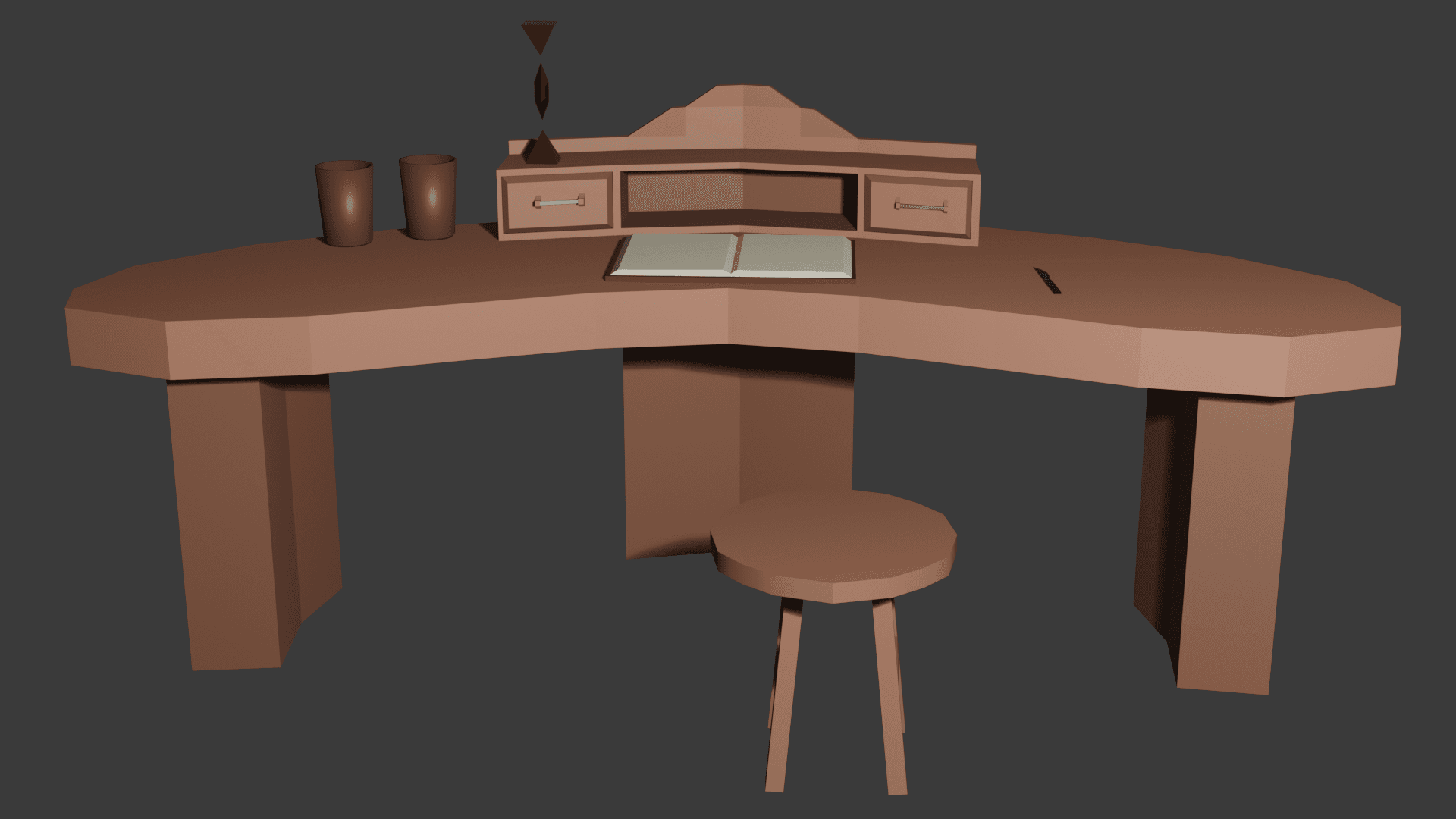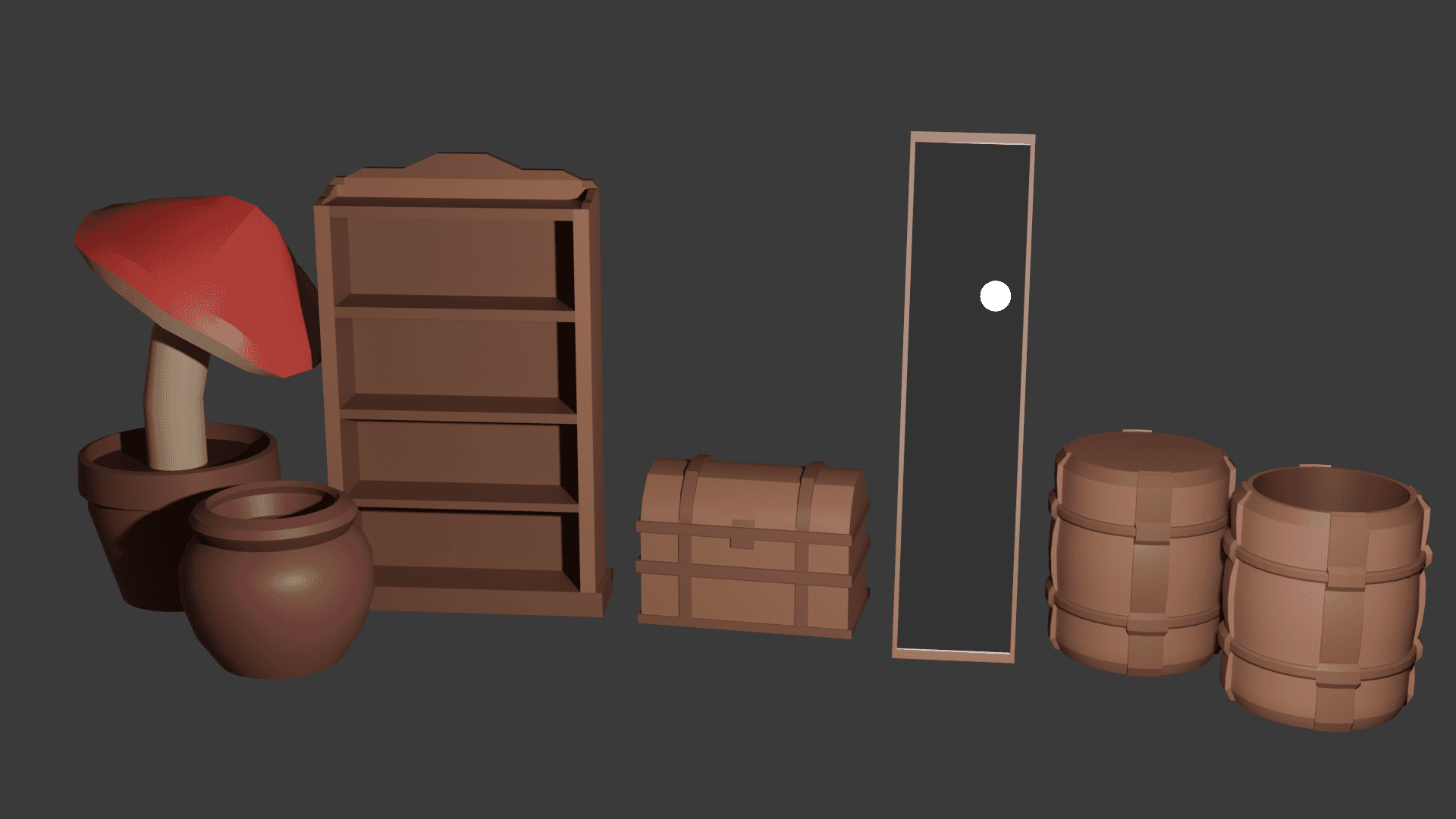 A small collection of assets I created for my senior capstone. ment to used for a potion lab. They where made entirely in blender and purposefully kept low poly for the style of the game. I think they came out nicely and they where fun to make. I tried to keep all the designs relative and similar to each other to really give it a set feel for a room instead of having very drastic different items