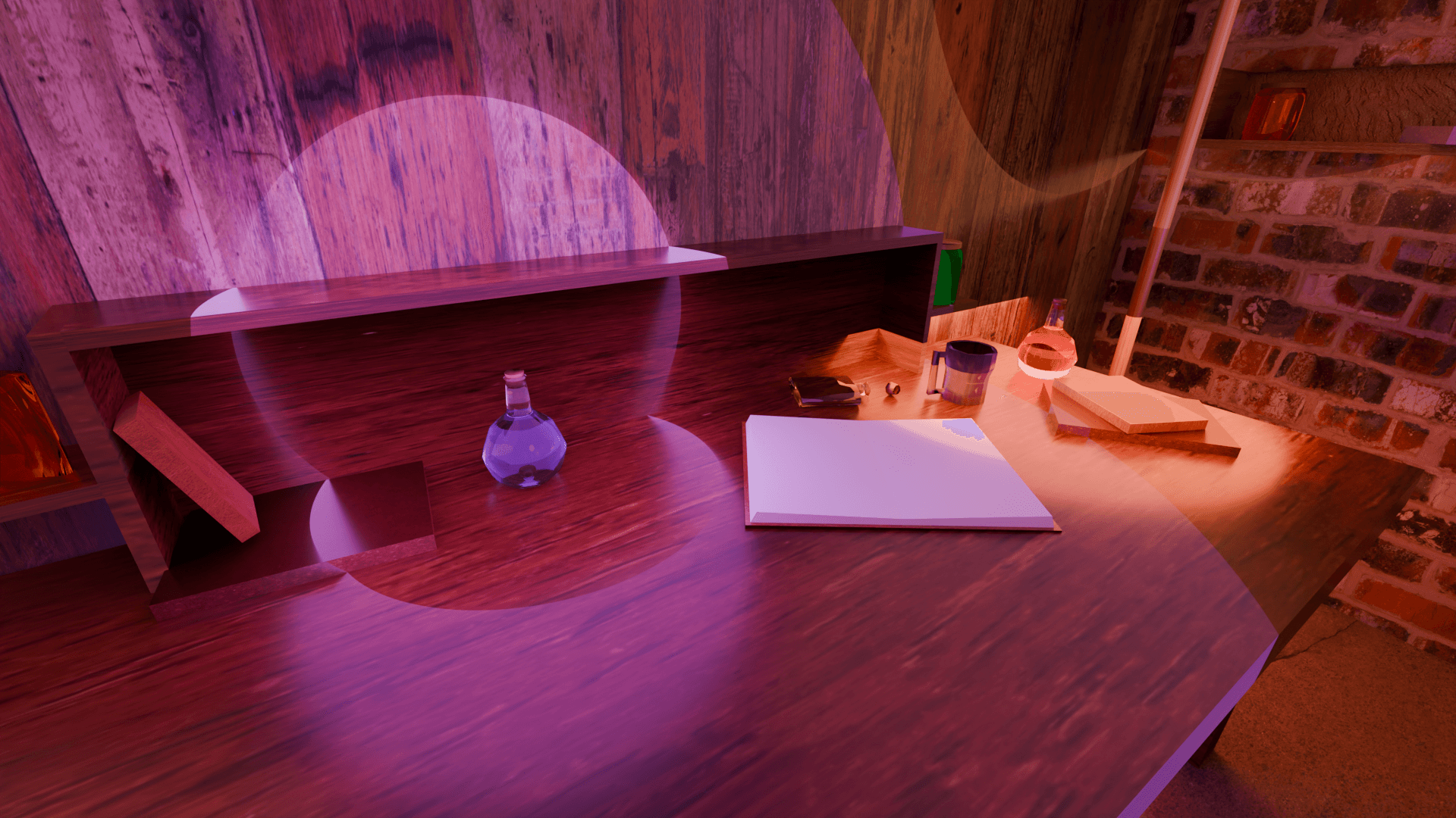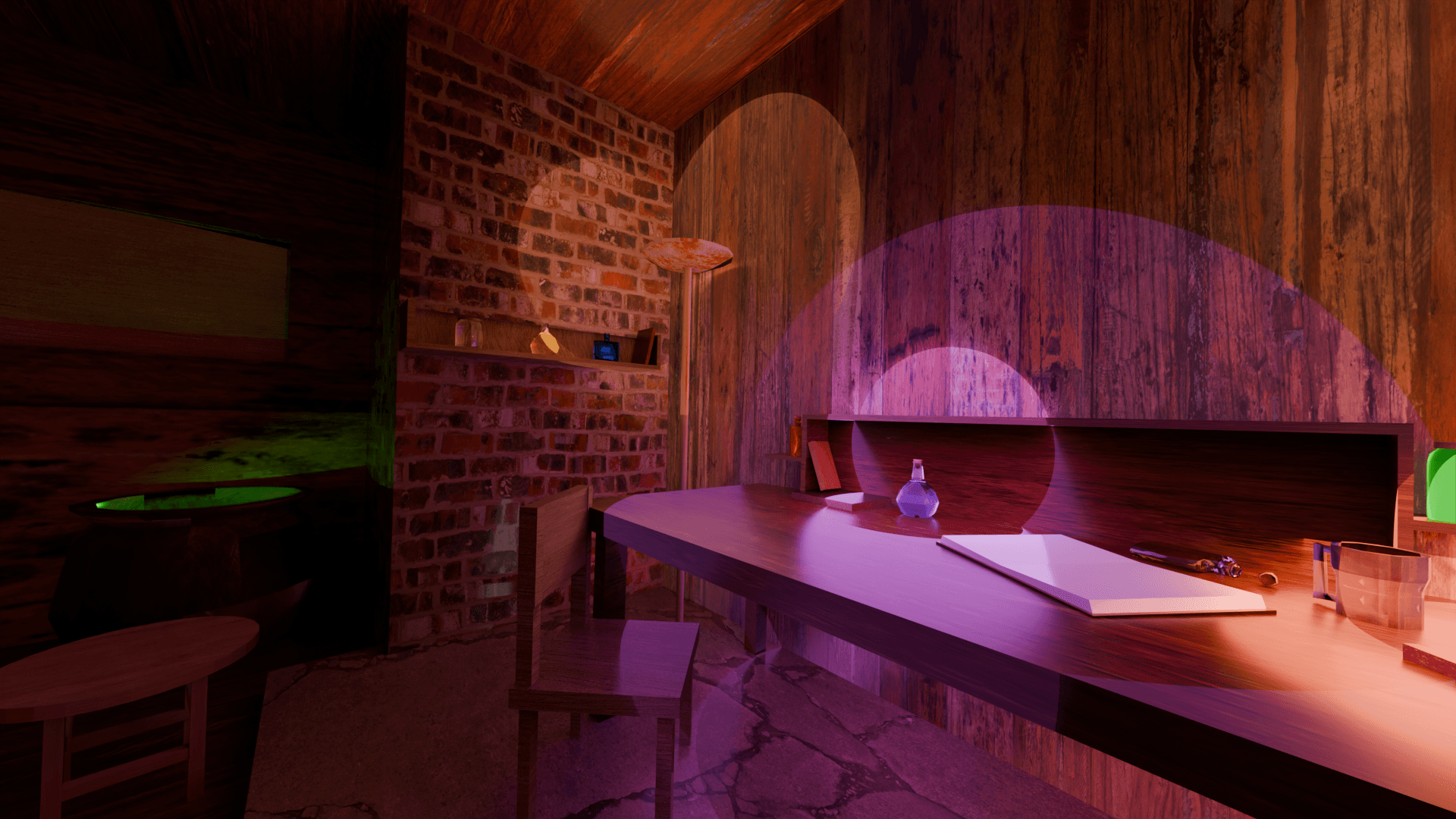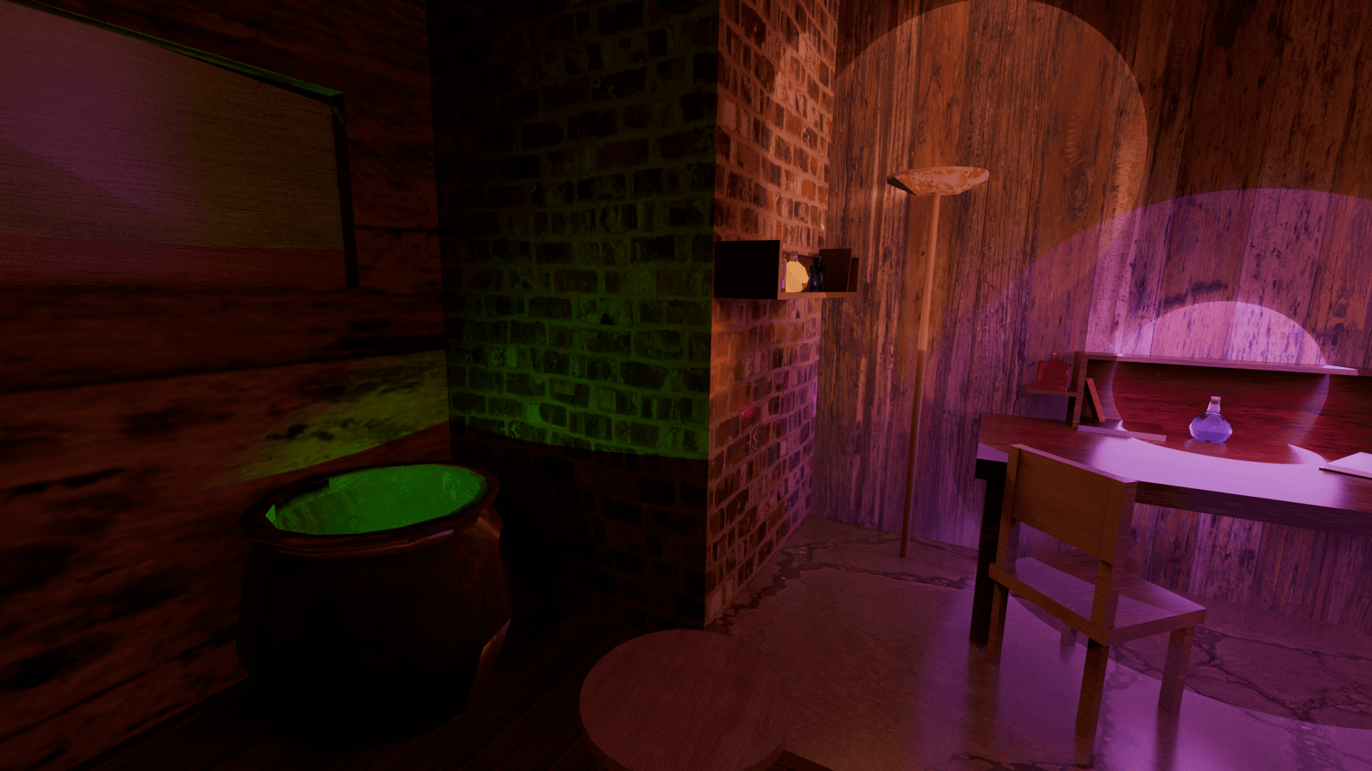 Just a simple collection of assets I created for our capstone. Intended for a witch's lab/potion brewing lab. I tried to keep everything concise and similar and in a low poly style.