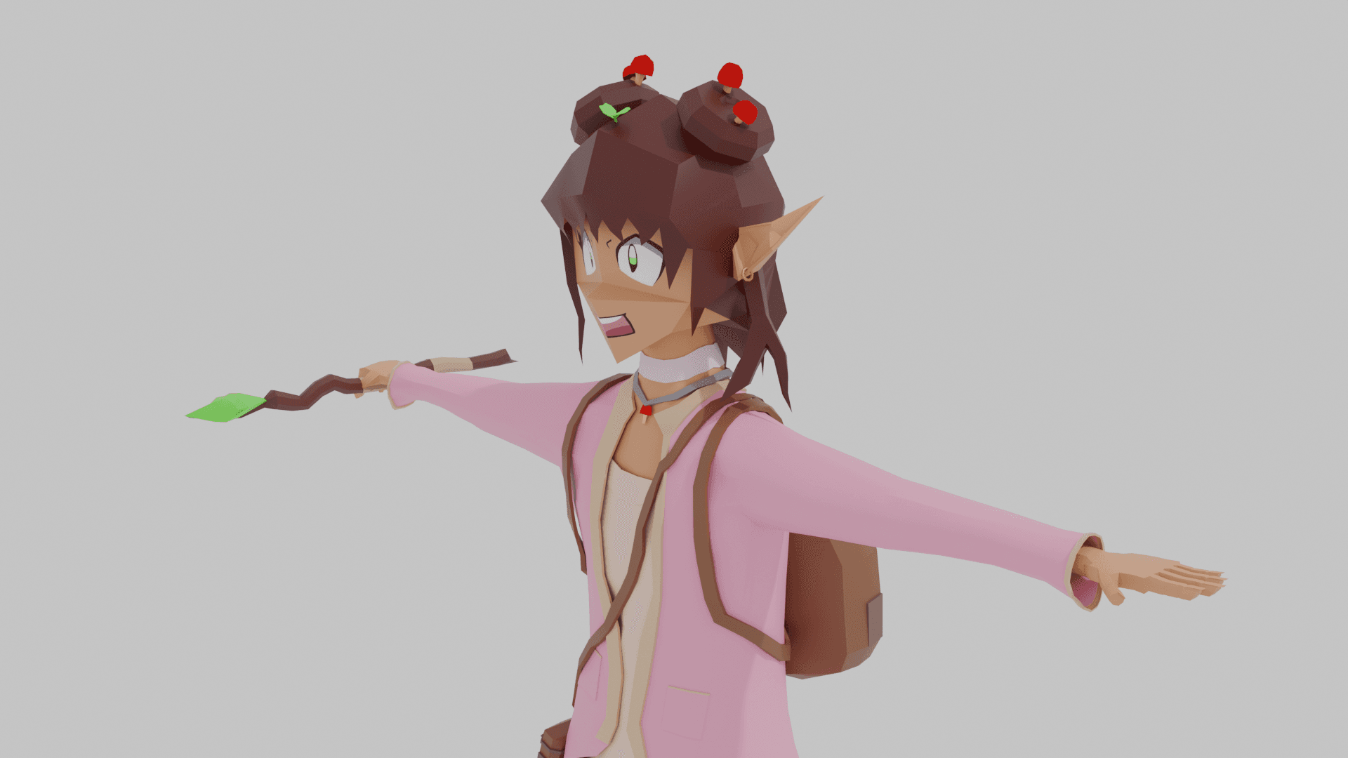 Designed by me for our capstone game project. I focused on making a unique and fun character that also gives players a feeling of what the game is like just from seeing the character. I think I made significant improvements to the model compared to my last one and look forward to making more.