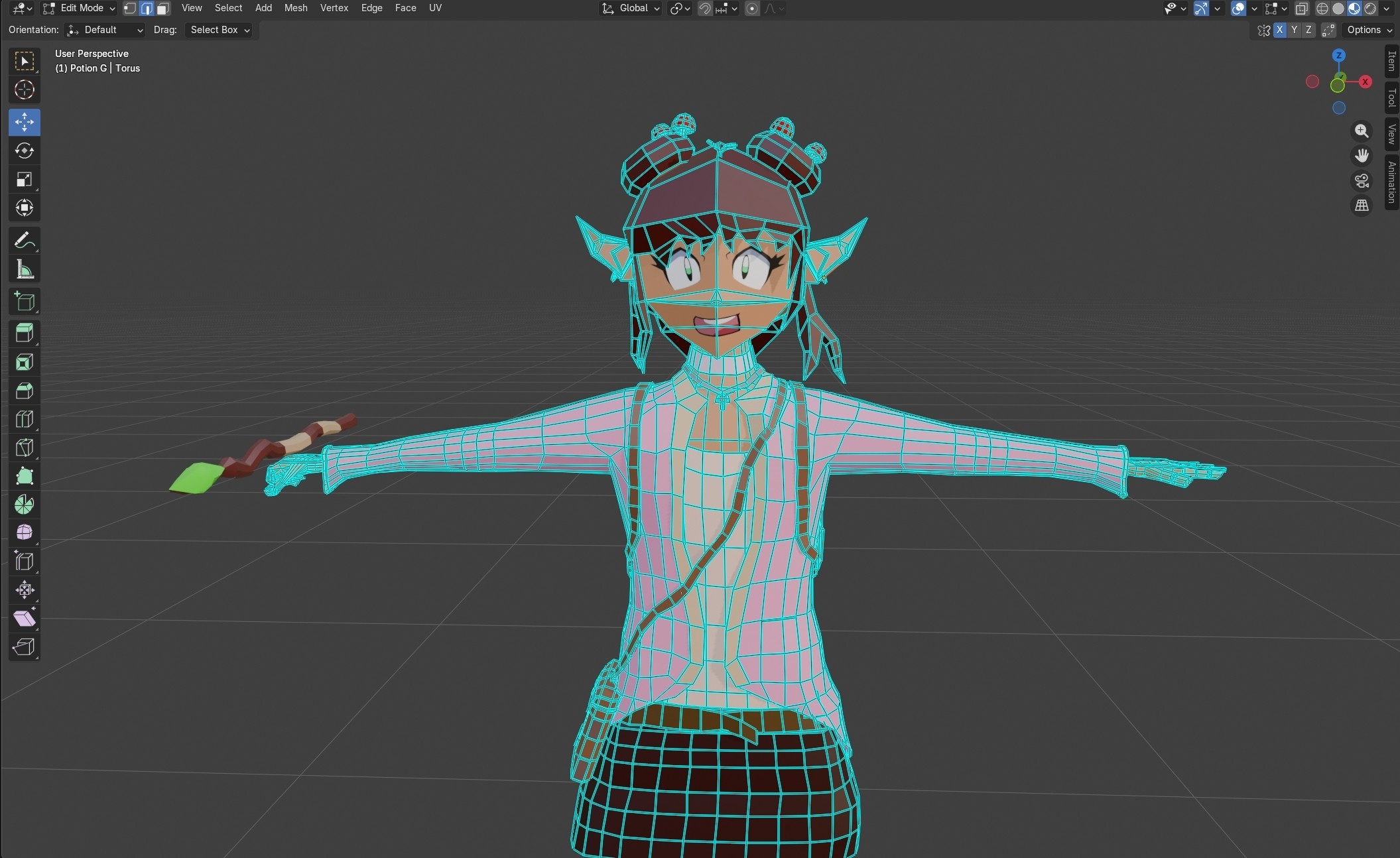 The First 3D character I've made. It started off in Maya however ended in blender as me and my professor found an error we couldn't fix and decided to just switch to blender for the end. So it was modeled in Maya then weight painted and exported through blender. I defiantly learned a lot through this as my first attempt and there are some things I love and some things that didn't come out so good, as expected from a first try. Some things that came out well I think are the face, hat, boots and legs, while the hands, ears, poncho and arms could definitely be improved upon which I will work on!